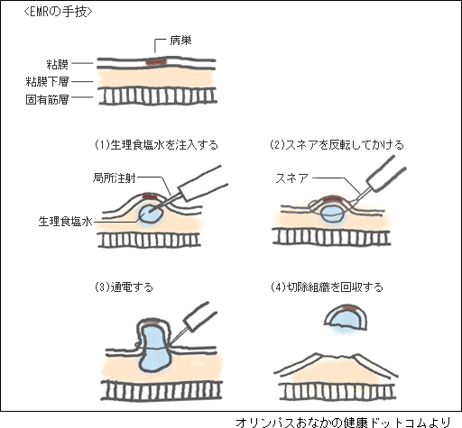 図4:内視鏡的粘膜切除術(EMR)の方法