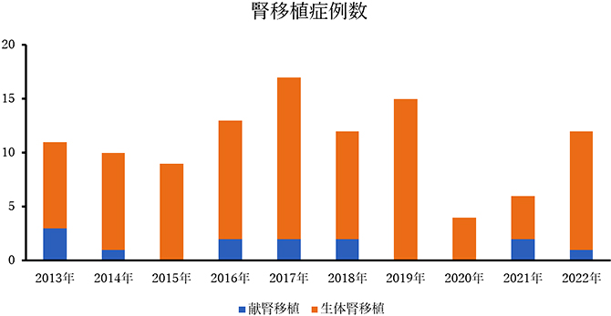- 腎移植(生体腎移植、献腎移植)、先行腎移植も含めて積極的に腎移植を施行しています。