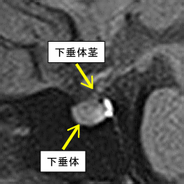 下垂体が腫瘍に圧迫されて下垂体ホルモンの分泌が悪くなります。