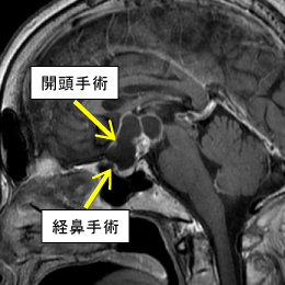腫瘍の大きさや発生している場所により開頭手術がよいか、経鼻的手術がよいか判断されます。