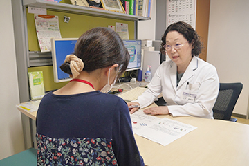 抗がん剤治療を専門とする医師(日本臨床腫瘍学会認定がん薬物療法専門医)、看護師(がん化学療法看護認定看護師、がん薬物療法看護認定看護師など)や薬剤師(外来がん治療認定薬剤師など)等の専門・認定資格をもったスタッフが連携し、それぞれの立場から副作用・合併症に対する対処方法を説明します。また、化学療法に伴う副作用や療養生活に関する相談について、電話対応も実施し(電話サポート)、安心して化学療法が継続していただけるように努めています。