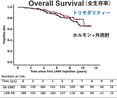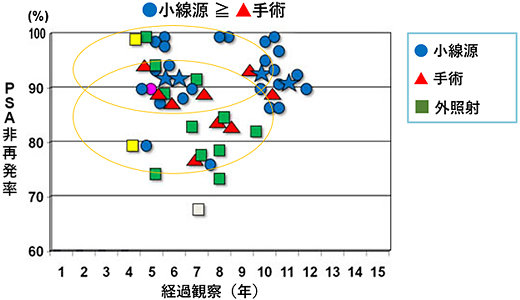 低リスクがんの場合、10年で考えれば小線源と手術単独ではPSA非再発率は大きな差はありません。