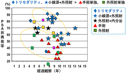 現状では高リスクの前立腺がんに対して、最もPSA再発(生化学的再発)が少ないと考えられる治療法です。