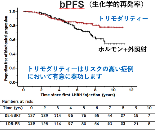 その高リスクの前立腺がんがトリモダリティ療法の適応となります。
