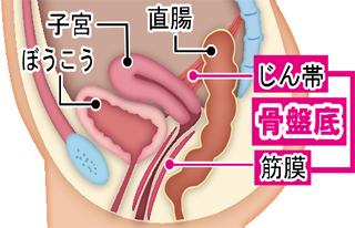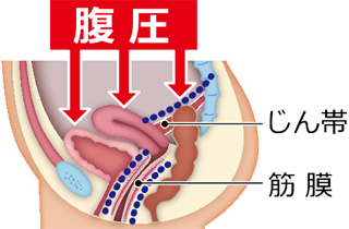 過度の腹圧が慢性的にかかることで骨盤の底の靭帯、筋膜、筋肉が緩み、骨盤内臓器が下垂・脱出。