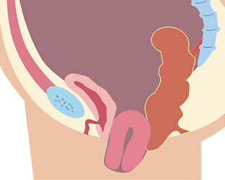 骨盤臓器脱とは、骨盤内にある臓器(子宮、膀胱、直腸など)を支えている靱帯、筋膜、筋肉、結合組織などの支持組織が弱くなったり(脆弱化)、破綻したりして骨盤内臓器がヘルニア状に膣内外に下垂・脱出してくる病気のことです。