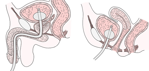 尿道留置カテーテル(左:男性、右:女性)