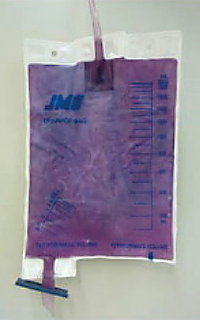 • 尿中のインジカンが細菌により色素(インジゴ青と赤)になり、その色素が蓄尿袋や管を染めるために生じます。