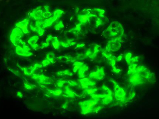 IgA(アイジーエー)は免疫グロブリンと呼ばれる抗体の一つで、腸管、気道などの粘膜や母親からの初乳に多く存在し、侵入してきた細菌やウイルスなどの抗原を防御する働きをしています。IgA腎症の原因は不明ですが、本来自分を守るはずのIgAが異常を来し、腎臓の糸球体にIgA免疫複合体が沈着して炎症を起こし、ゆっくりと糸球体を破壊してゆくとされています。糸球体は一度破壊されると再生することはなく、破壊が進んでゆくと徐々にろ過機能が低下していきます。