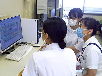 - 多くの診療科に対応し、患者さんのニーズに応じた看護が提供できるよう心がけています。また、各診療科とは定期的にカンファレンスを行い、医師、看護師、薬剤師など他職種で連携を図っています。