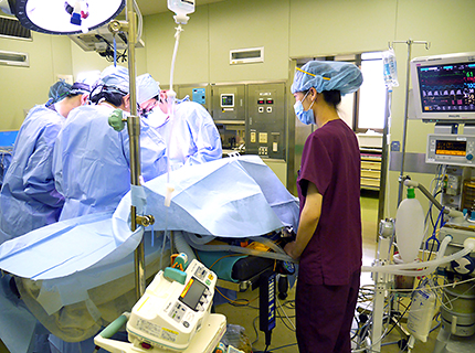 また当院は救命救急センター、脳心臓血管センター、総合周産期医療センター、成育医療センターなどの診療センターがあり、これらの部署と連携し手術を行っています。