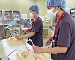 手術は産科の帝王切開から婦人科の子宮摘出術など様々です。手術室では助手として血液や羊水の吸引、鈎引きで術野の確保などを行います。