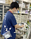 手術室へと向かい、麻酔器の立ち上げや、使用する薬剤などの準備を行います。
